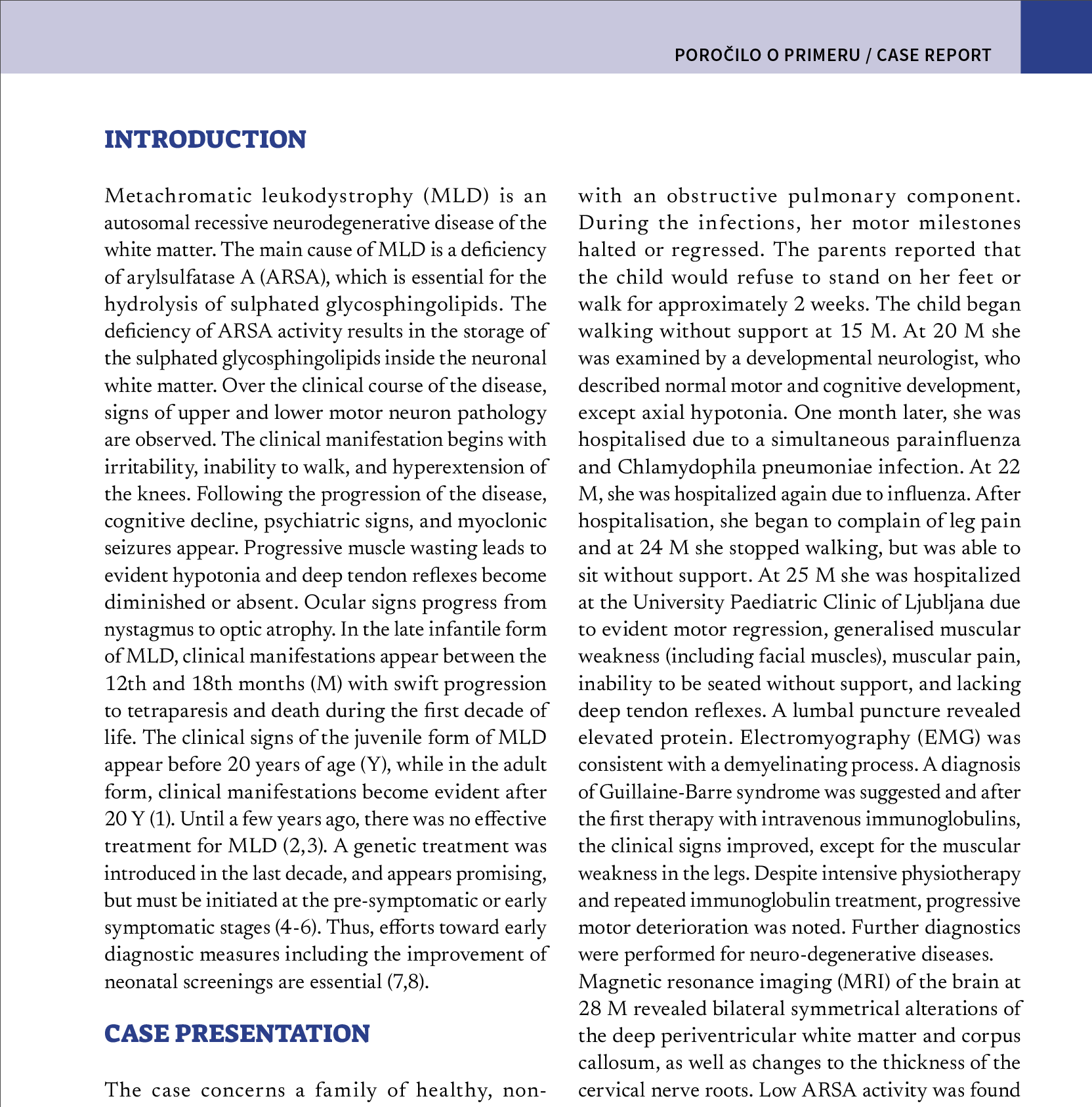 Prikaz primera dveh sorojencev s pozno infantilno obliko metakromatske levkodistrofije